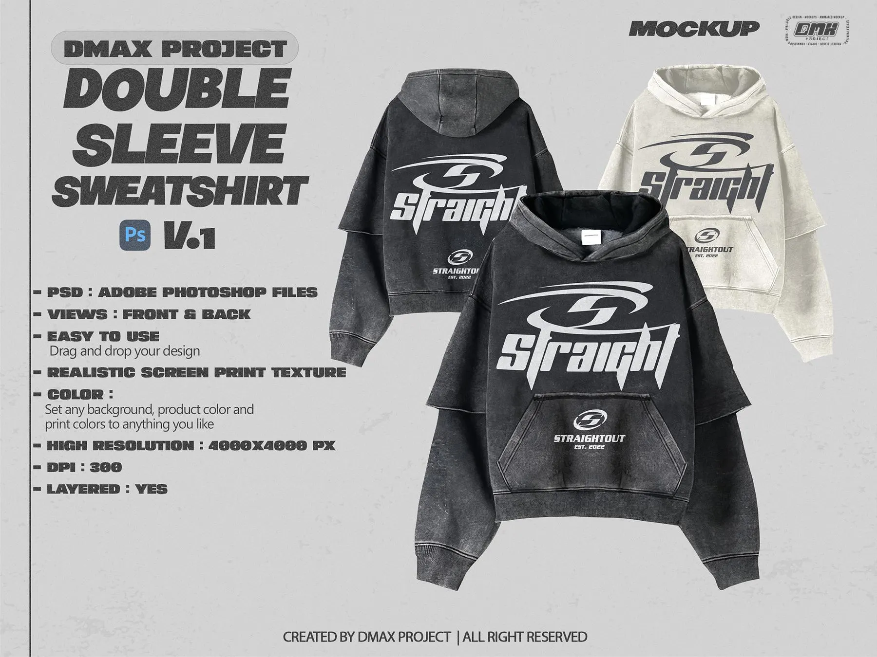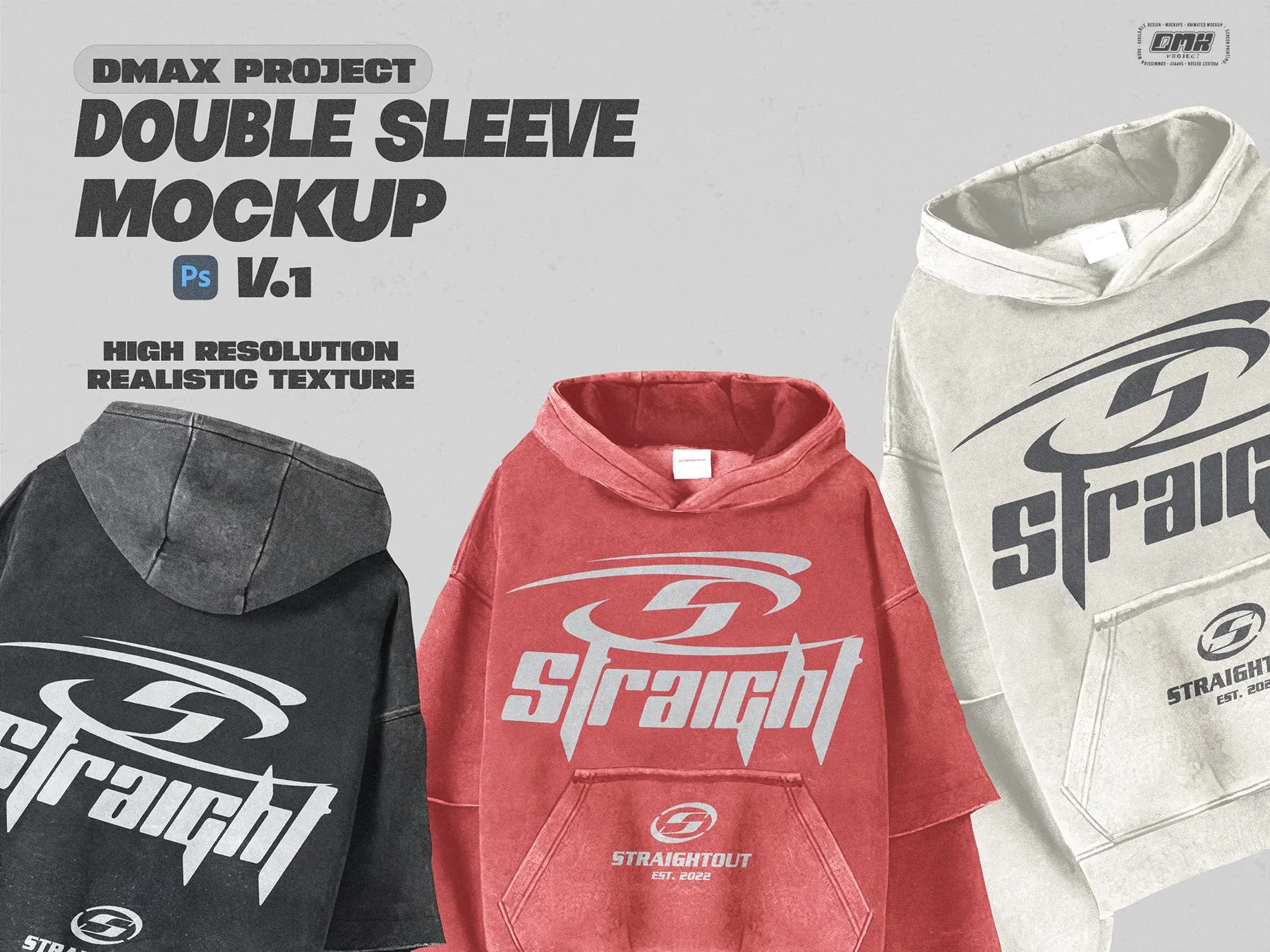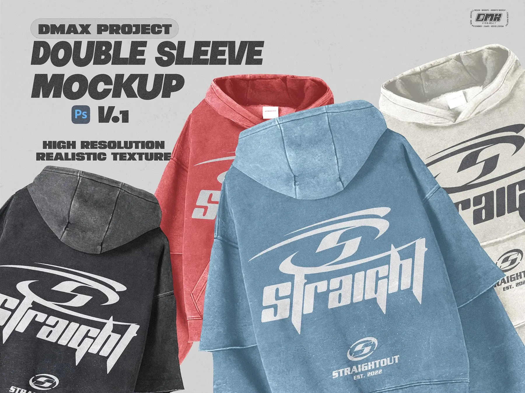 Level up your apparel presentation with this Double Sleeve Hoodie Mockup PSD from DMAX Project V1! Designed for streetwear brands and print-on-demand creators, this mockup features a vintage washed texture with a realistic screen print effect that brings your designs to life.